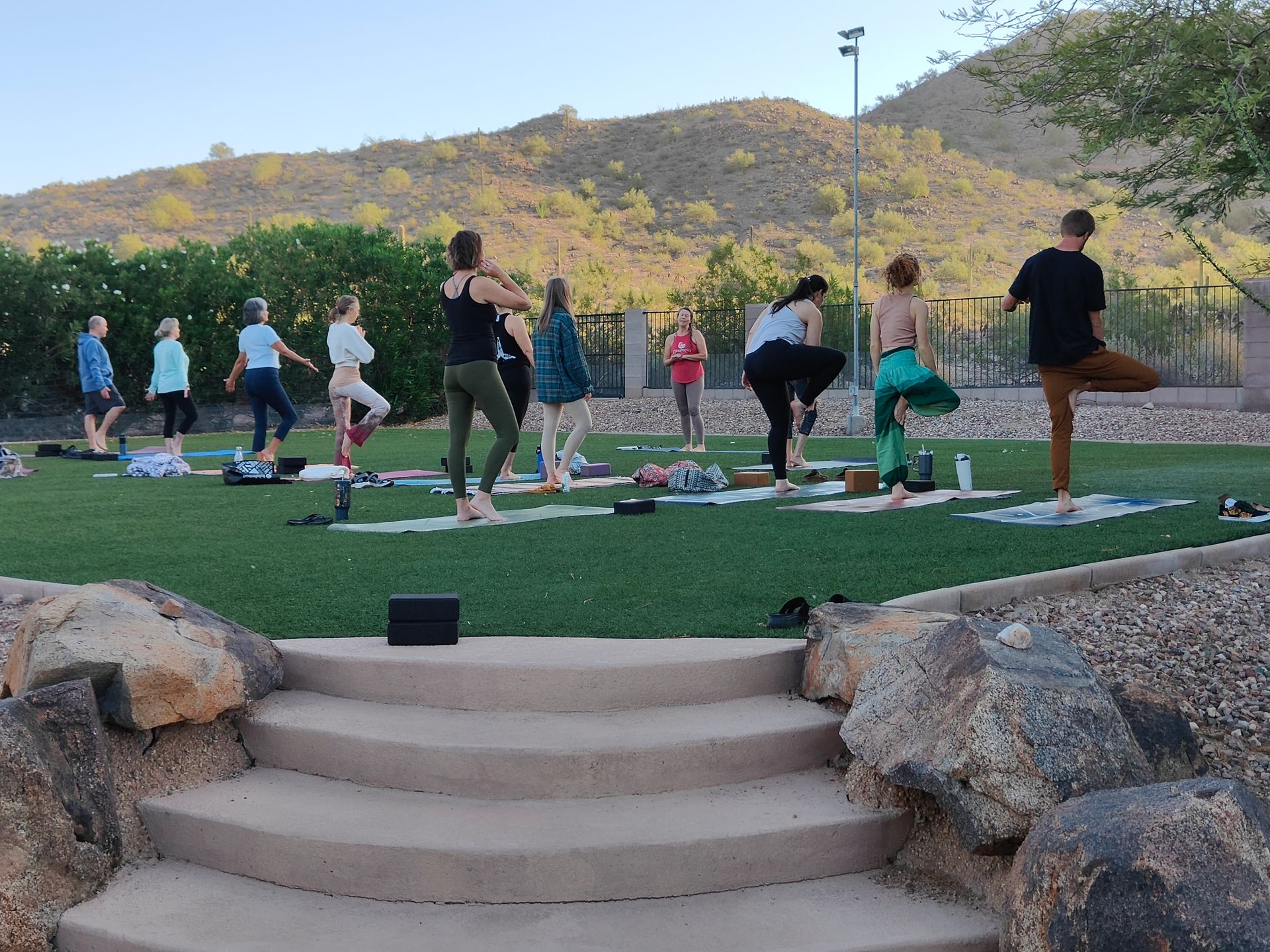Breathe in the beauty of the desert as you move, stretch, and connect under the open sky at Blisstopia Yoga. Our outdoor sessions take place at the base of Sunrise Mountain, where nature becomes your studio and each class feels like a gentle return to yourself.